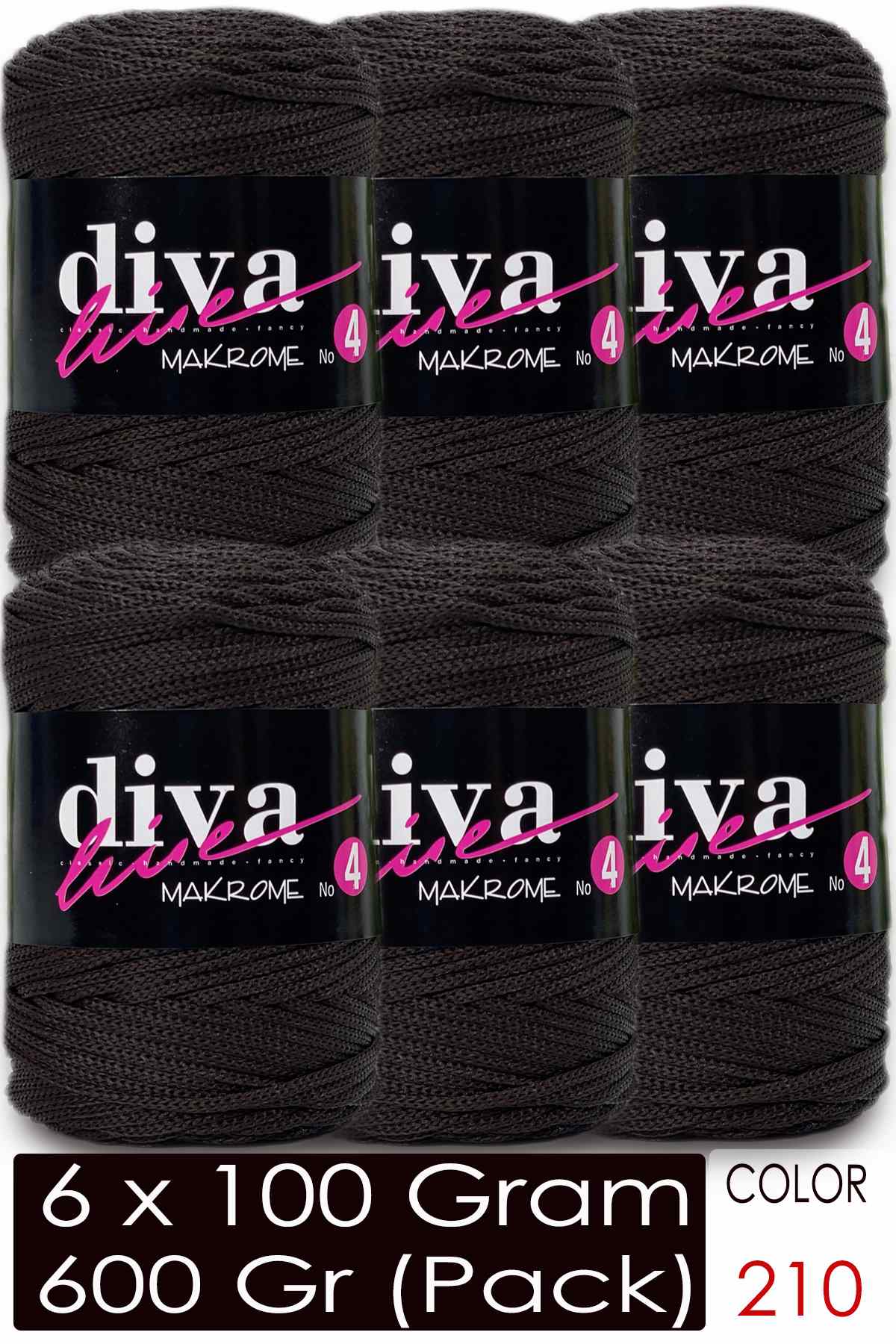 Diva Makrome İpi Kalın (No:4) 210 Bitter Kahve ( 6 lı Paket )