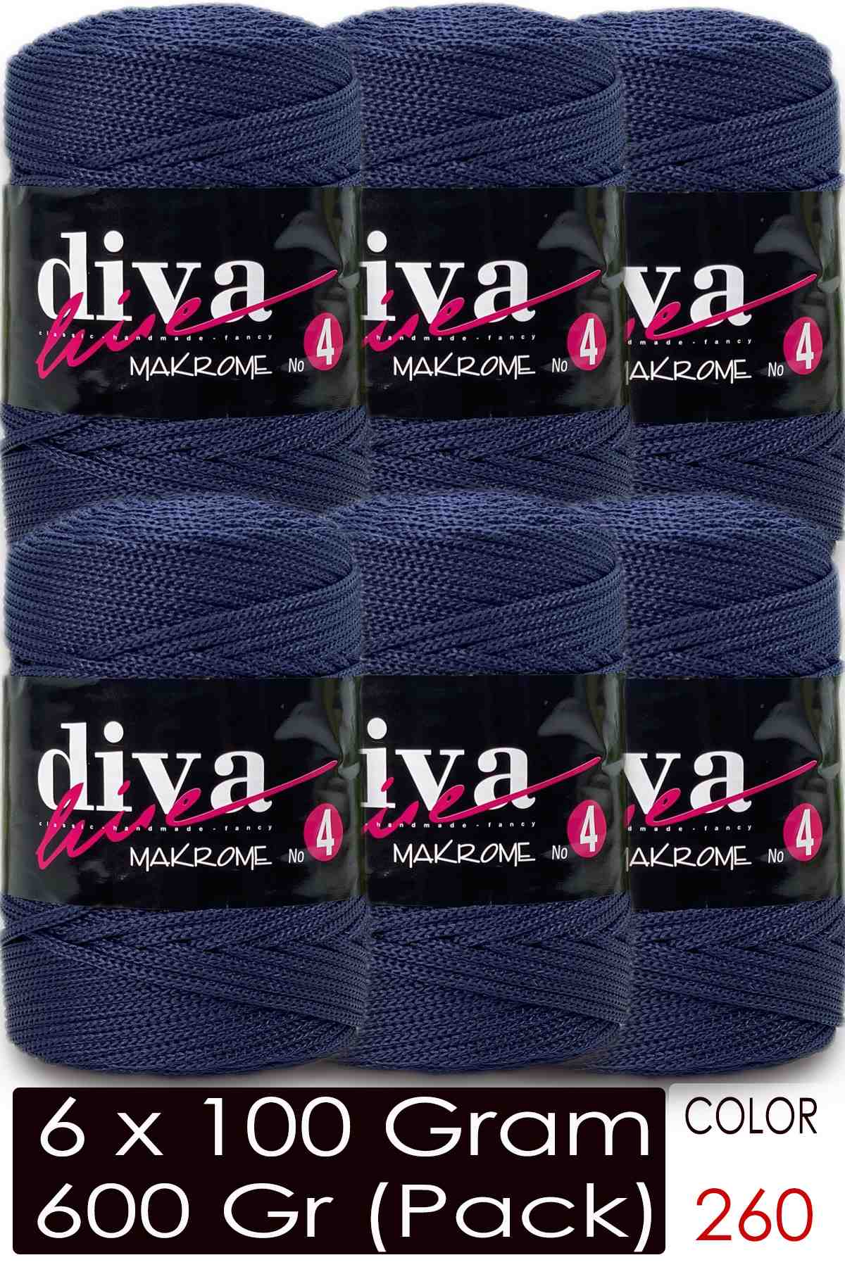 Diva Makrome İpi Kalın (No:4) 262 Lacivert ( 6 lı Paket )