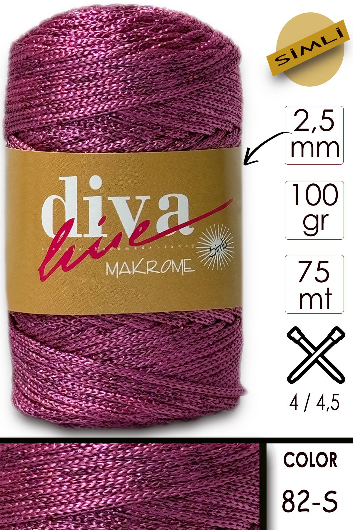 Diva Makrome İpi Simli 82S Fuşya ( 6 lı Paket )