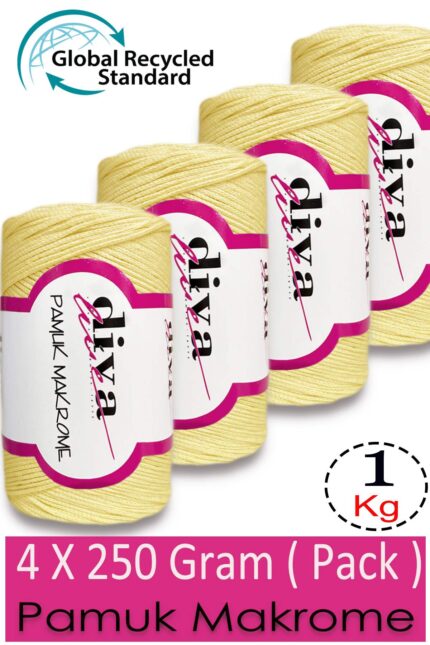 Diva Pamuk Makrome 1002 Soft Sarı ( 4 lü Paket)