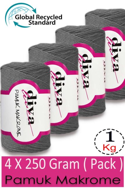 Diva Pamuk Makrome 194 Orta Gri ( 4 lü Paket)