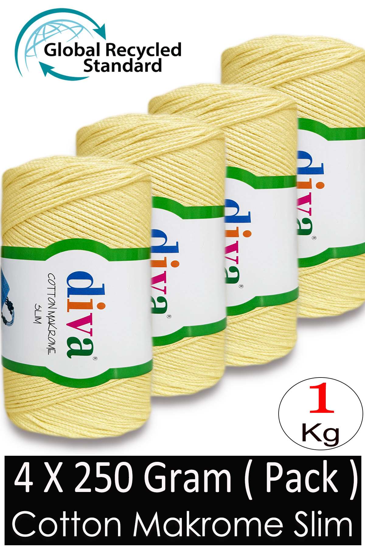 Diva Cotton Makrome İnce 1002 Soft Sarı ( 4 lü Paket ) - Görsel 1