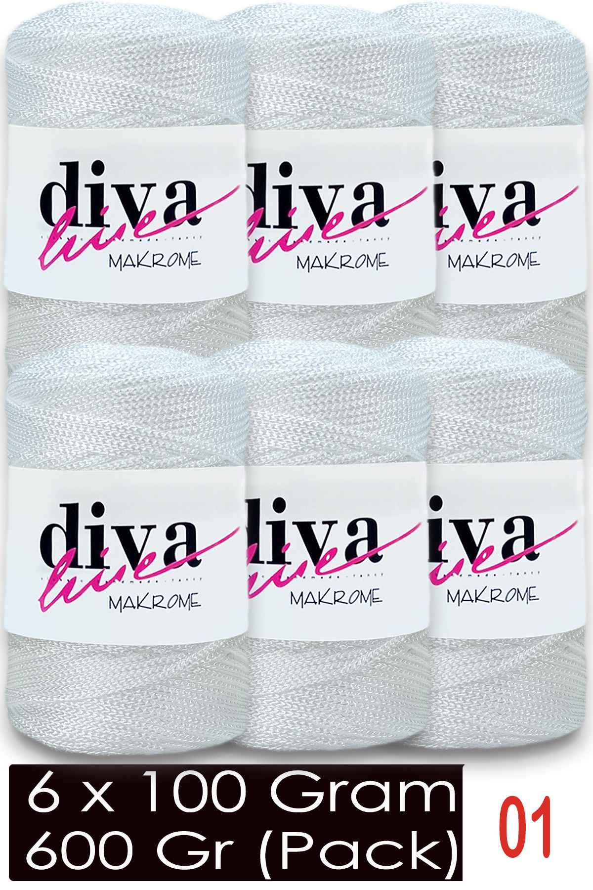 Diva Makrome İpi 01 Beyaz ( 6 lı Paket )
