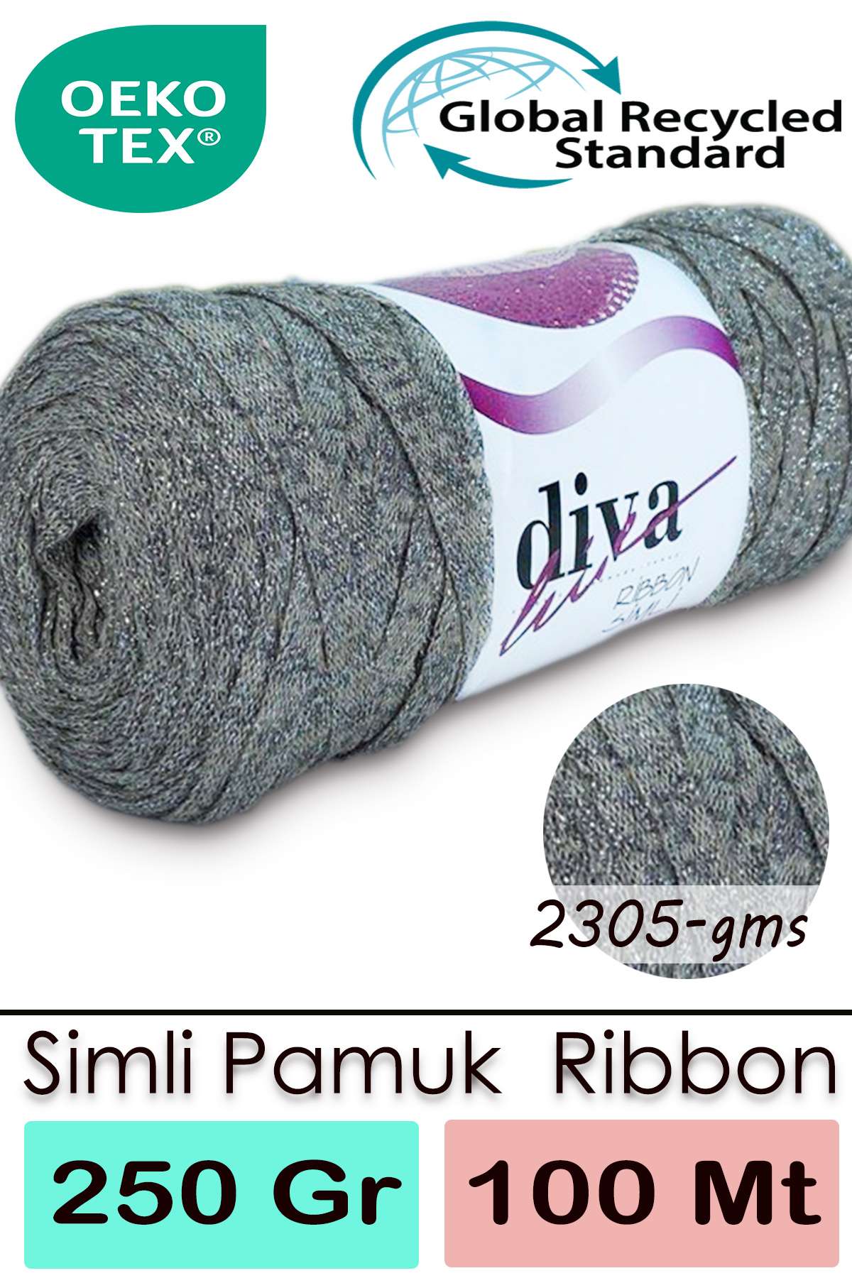 Diva Ribbon Simli 2305GMS Bej-Gümüş ( 4 lü Paket )