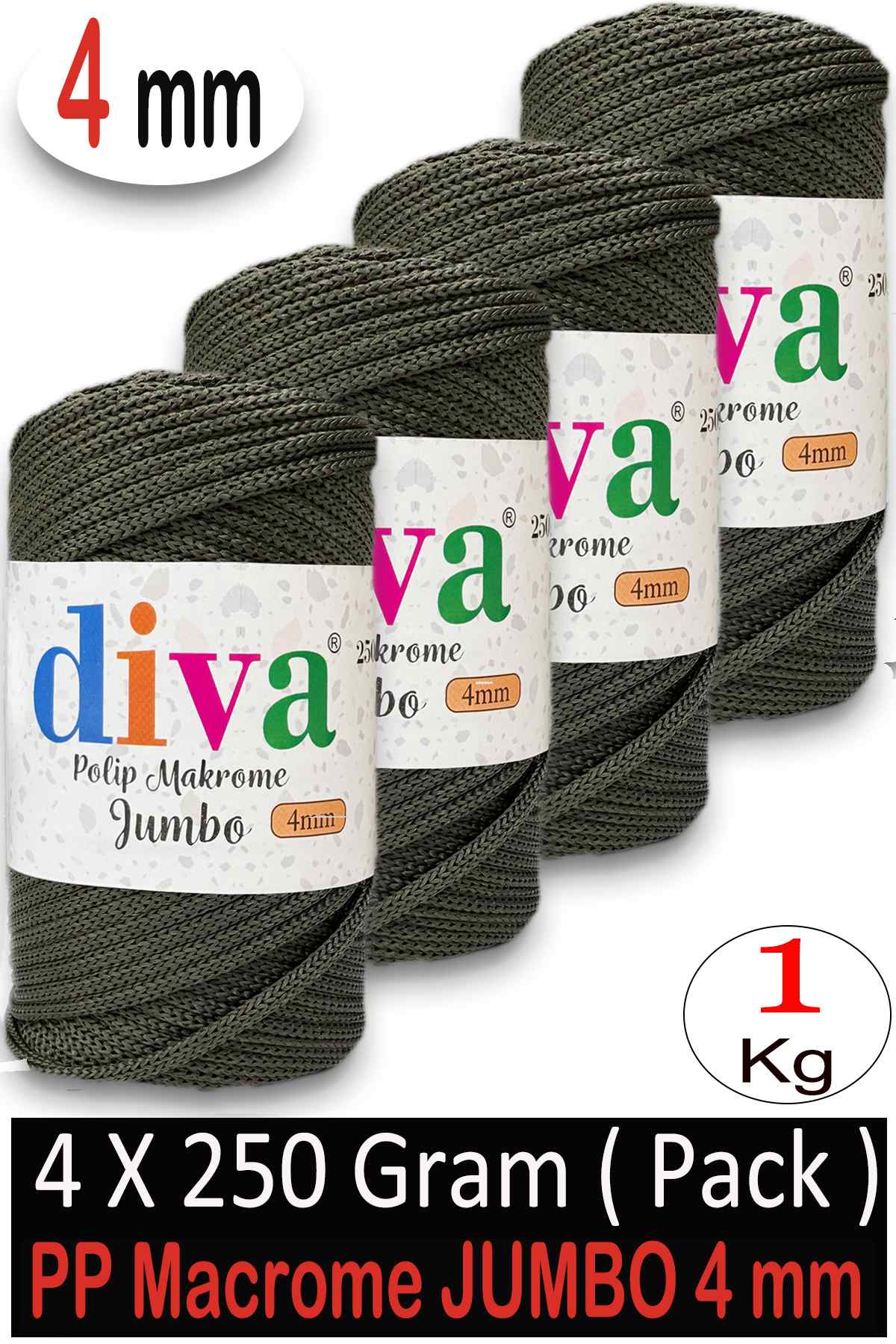 PP Makrome Jumbo 250 gr (4 mm) 193U2860 Yeşil ( 4 lü Paket )